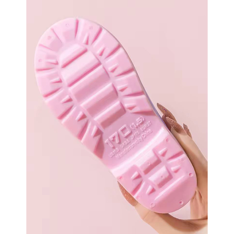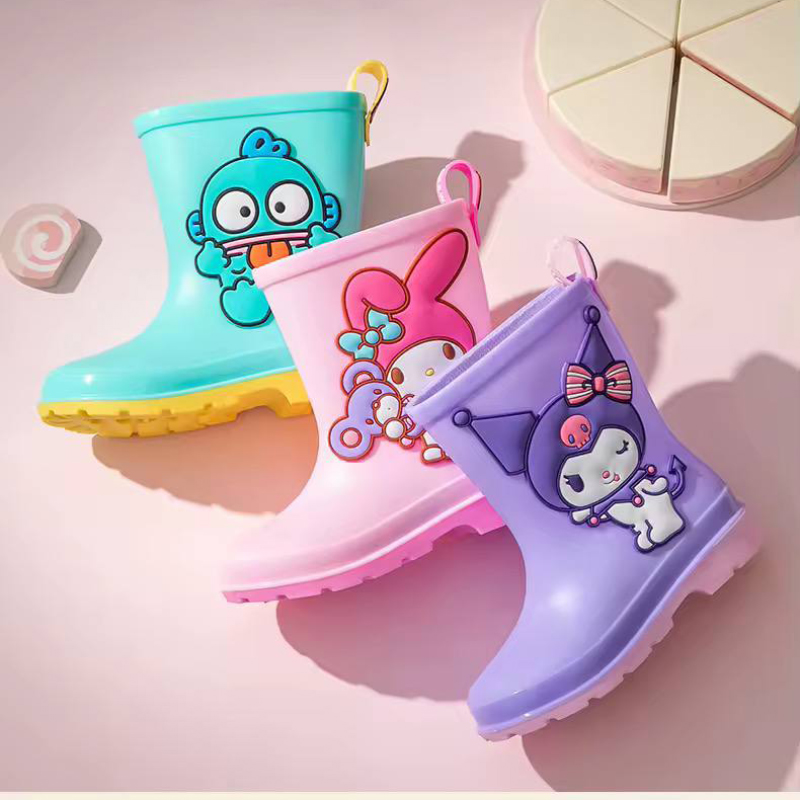 - جنس با کیفیت و ضد آب: جنس این رینبوتها از PVC (پلی وینیل کلراید) ساخته شده است. PVC یک ماده پلاستیکی با دوام و مقاوم است که به خوبی در برابر آب و رطوبت از خود محافظت میکند. این ویژگی باعث میشود که رینبوتهای سانریو برای استفاده در شرایط آب و هوایی مختلف مناسب باشند و از پاهای کودکان در برابر خیس شدن محافظت کنند.