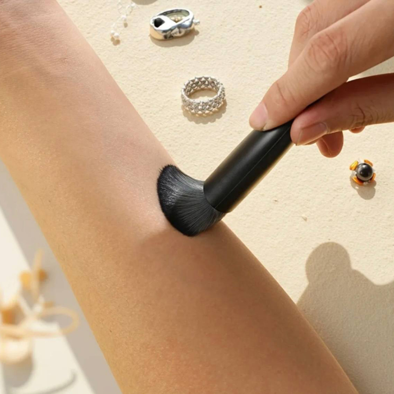 - براش کرم پودر: این براش با داشتن موهای متراکم و نرم، به پخش یکنواخت کرم پودر بر روی پوست کمک میکند و پوششی صاف و بیعیب و نقص ایجاد میکند.