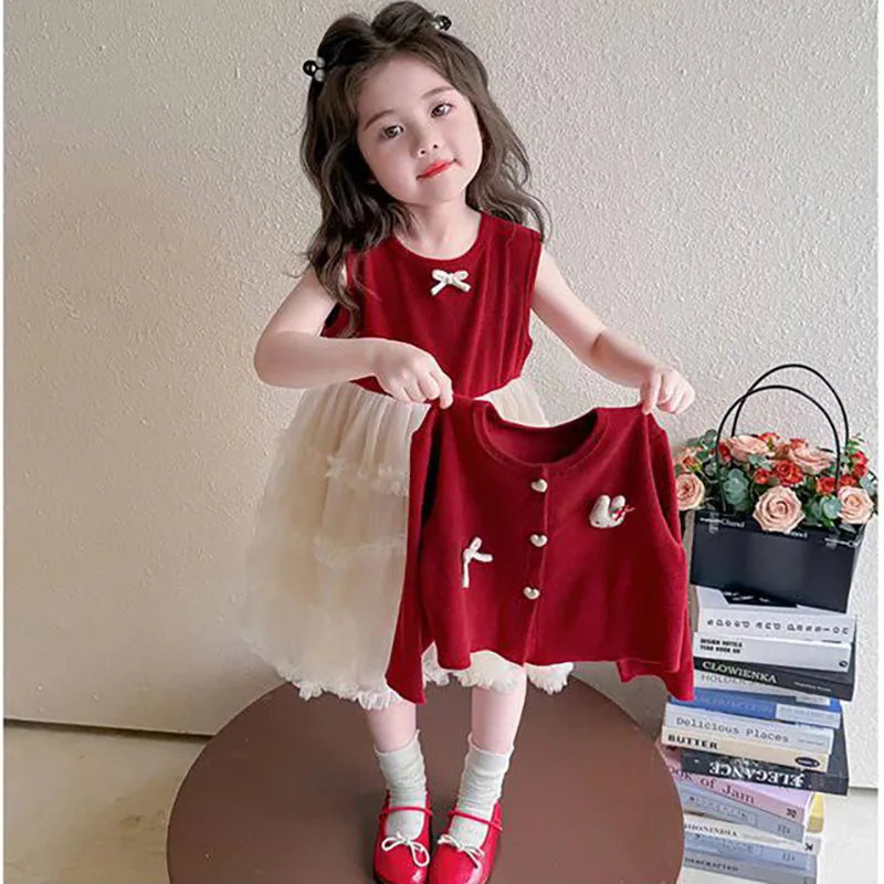 ست دو تیکه کت سارافن مجلسی (مناسب دختران ۲ تا ۸ سال)