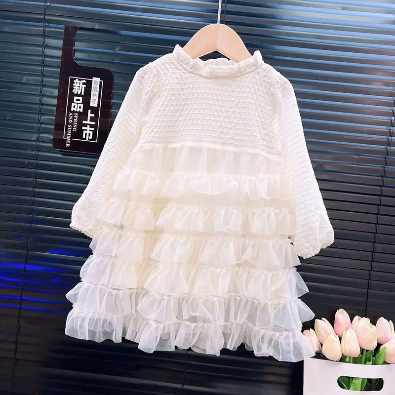 سارافون کرم رنگ با دامن پرچین: دامن سارافون از جنس پارچهای نرم و سبک است که با طراحی پرچین و حجیم، جلوهای شیک و دخترانه دارد. این طراحی باعث میشود که کودک شما راحتی کامل را تجربه کند.