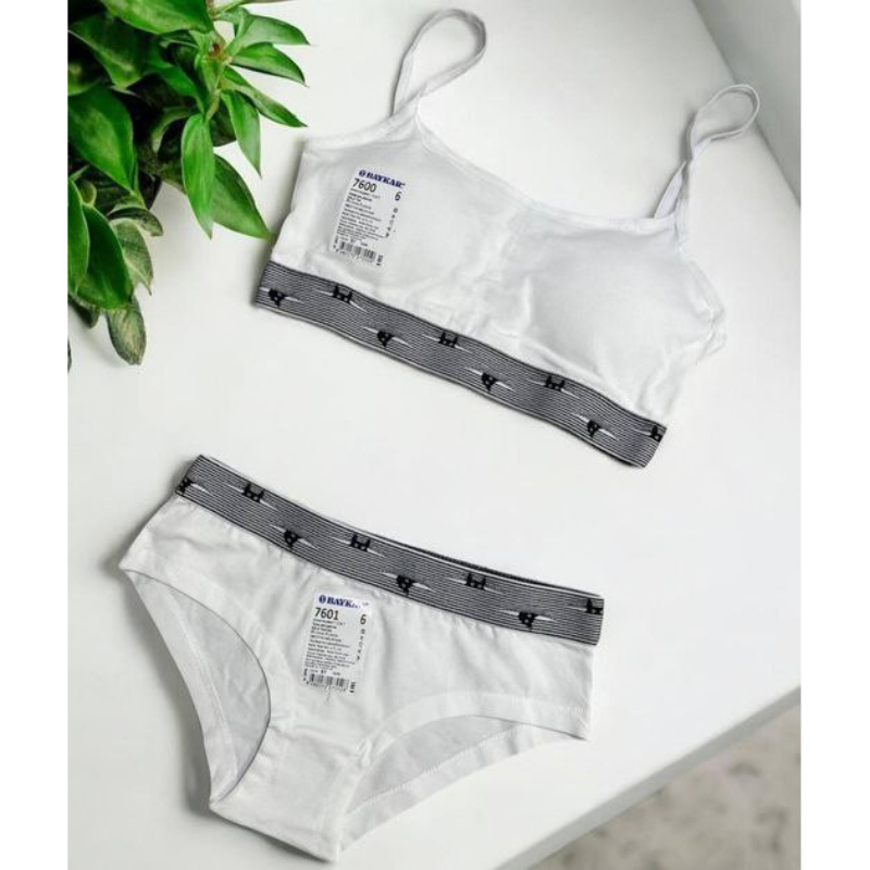 Cat pattern girls' bra and panties set with cupsCat pattern girls' bra and panties set with cups