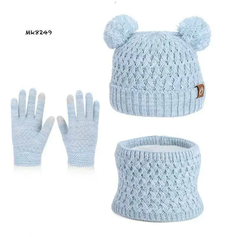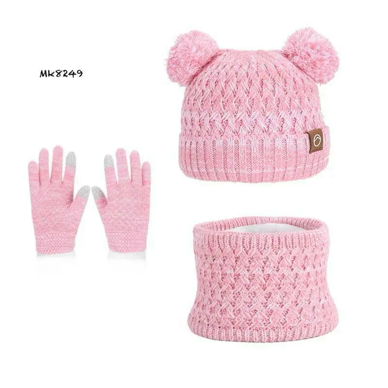 این ست شیک و کاربردی، در طرح‌های مختلفی موجود است و به راحتی می‌توان آن را با انواع لباس‌های زمستانی ست کرد. کلاه با دو پوم‌پوم در بالای سر، شال رینگی و دستکش‌های گرم، انتخابی مناسب برای محافظت از کودکان در برابر سرما می‌باشد.