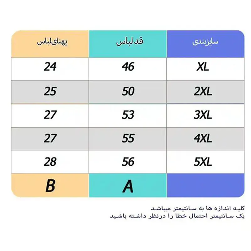 سایزها: XL, 2Xl, 3Xl, 4xl, 5Xl