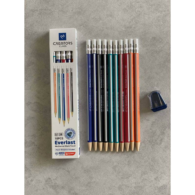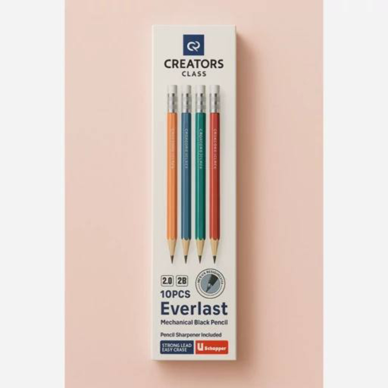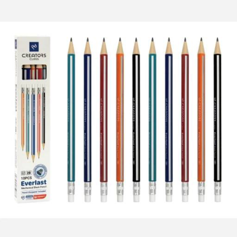 مداد مشکی اتودی C-Class Everlast، در بستههای 10 عددی عرضه میشود و همراه با یک تراش دو قسمتی و سری پاککن ارائه میگردد. این مدادها با ضخامت نوک 2 میلیمتری، برای طیف وسیعی از کاربردها مناسب هستند، از جمله: